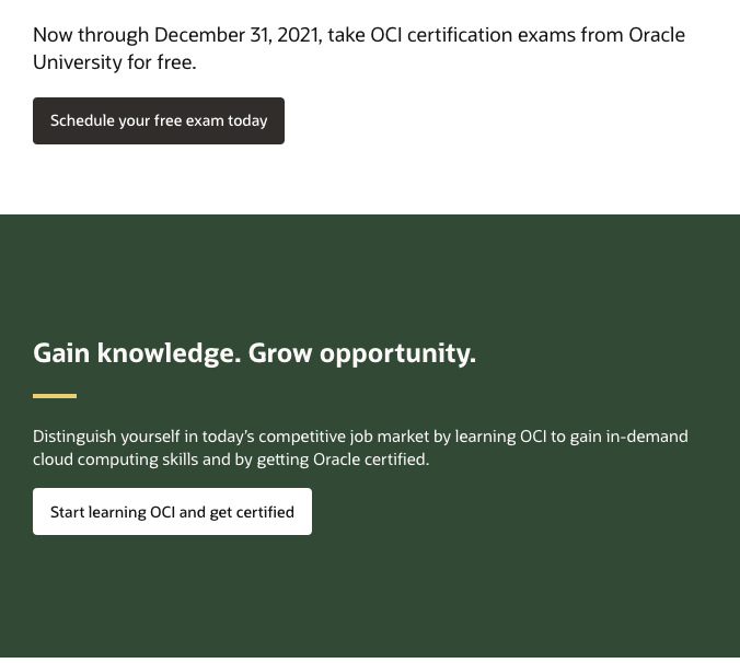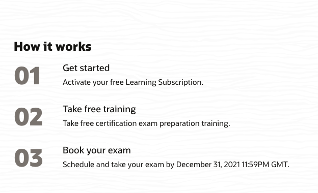 2021 оны 12-р сарын 31-нийг дуустал Oracle Cloud -ийн сургалт болон шалгалтууд үнэгүй болсон байна.